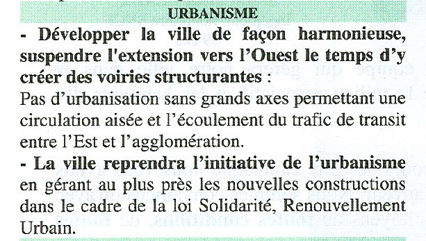 J’ai été élu sur la liste « Ensemble pour le changement » qui s’est présentée à vos suffrages en 2001. Notre programme (voir extraits ci-contre) était explicite.